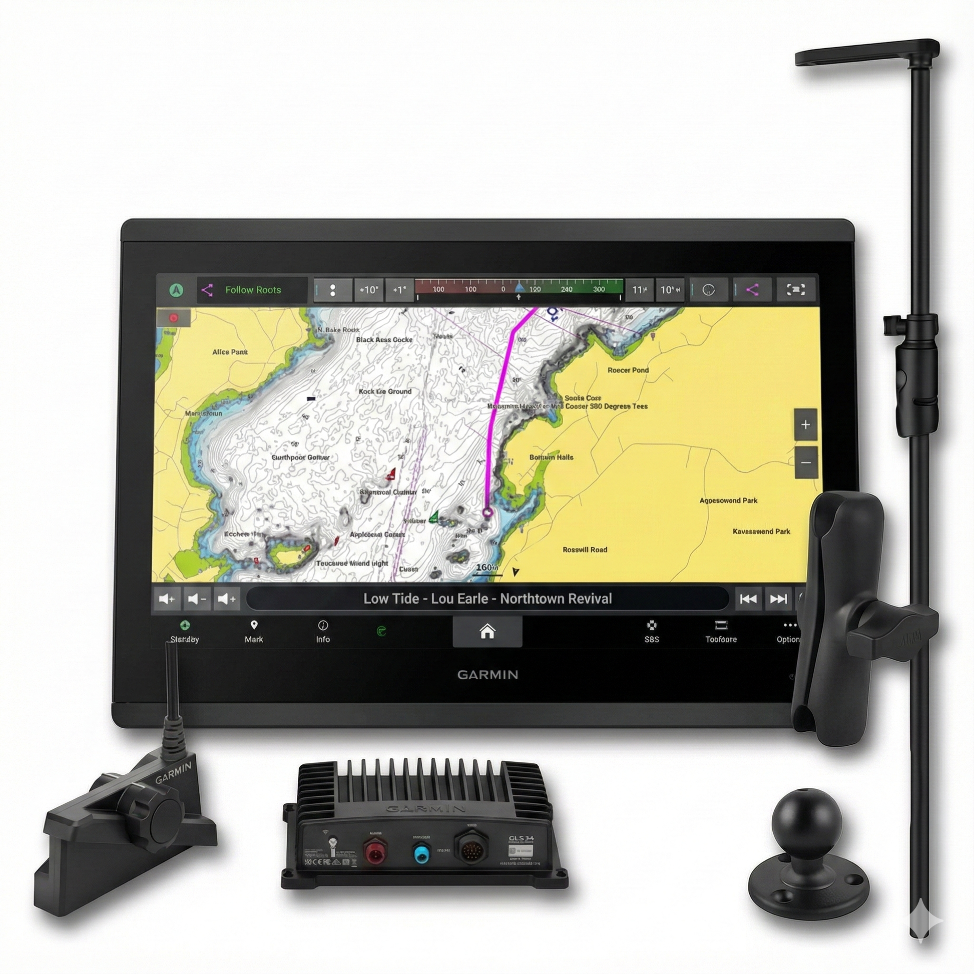 This elite bundle is engineered for the ultimate fishing setup, featuring the massive **GPSMAP 1653xsv 16-inch Chartplotter** as the command center. It integrates the phenomenal clarity and target separation of the **LiveScope™ Plus System (GLS 10 & LVS34)** with the precise, affordable manual control offered by the **C.V. Transducer Pole**. This combination provides the largest possible screen size and most powerful processing to handle simultaneous live sonar, mapping, and networking data flawlessly.